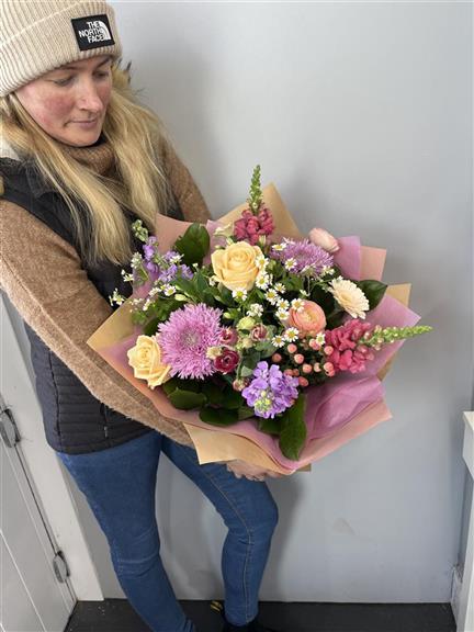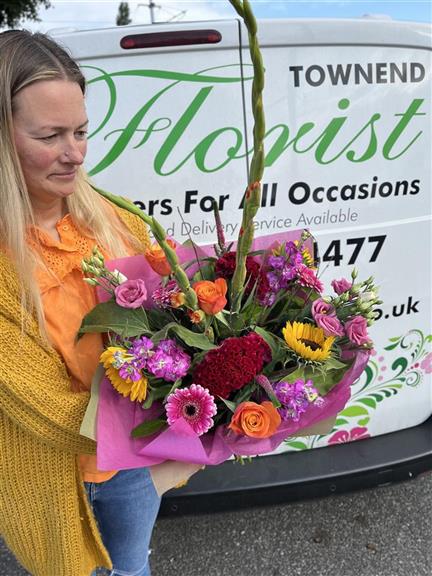 Same day flowers are a unique design, created by us at Townend Florist. Everyday we have a fresh flower delivery come into our shop. Every day we create beautiful bouquets for each and  every customer that needs that bouquet delivering today.  We take pride in making our flower bouquets perfect for each customer as every customer has a different reason and occasion for sending flowers.  So why cant i have a Purple Haze Bouquet today? Well that is because we would order those flowers to come in for the next day or the pre ordered day you want your delivery to take place. Our Fl ...Read More