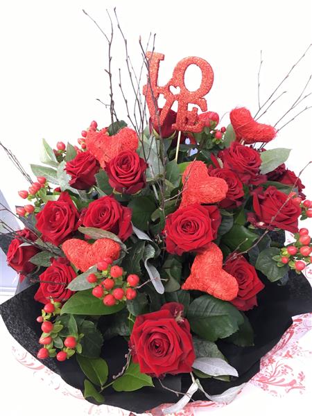 Our Deluxe Twenty-four red roses will include accesorise that make it a truly memorable Valeninte's Day Bouquet.