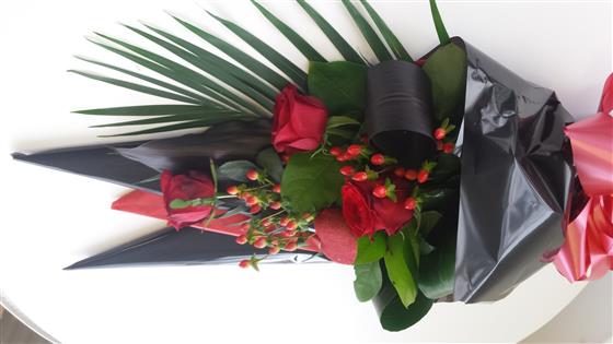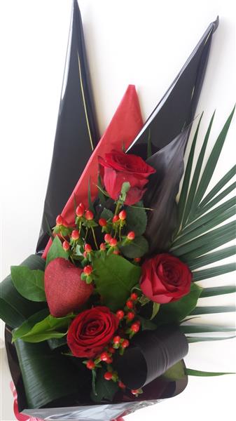 Those three little words everyone loves to hear...So our three tall red roses tied into a modern bouquet say it all.