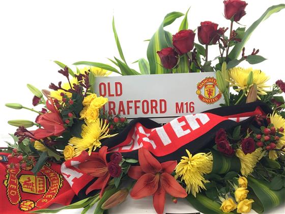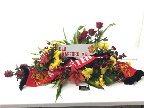 The piece pictured was made for the side of the Hearse using Manchester United memorabilia.