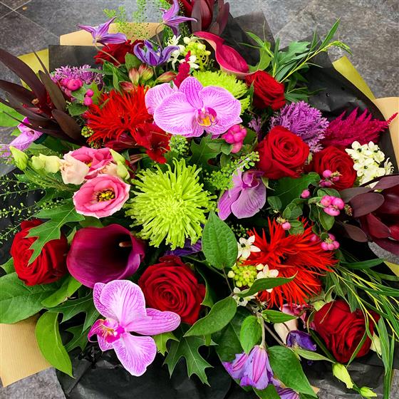 Please note that due to the seasonal availability of flowers it may be necessary to vary individual stems from those shown. Our skilled florists may substitute flowers for one similar in style, quality and value. Where our designs include a sundry item like a vase or basket it may not always be possible to include the exact item as displayed. Gift wrapping and final presentation will chossen by our Florists to suit your specific occassion and will vary from the original product picture. If such an occasion arises we will make every effort to replace the item with a suitable alternative.