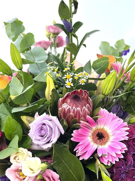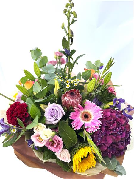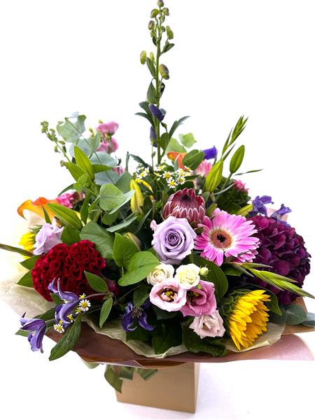 Filled with scent, colour and texture this bouquet is not for the faint hearted. It's big, it's beautiful and filled with floral joy.