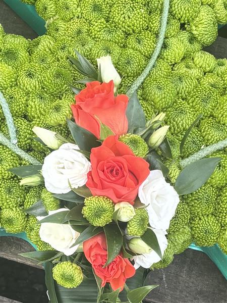 Looking for a truly special floral tribute? Our unique, handcrafted shamrock is a beautiful way to show you care. Made entirely from fresh, vibrant flowers, this piece is a real showstopper and something you won't find anywhere else.